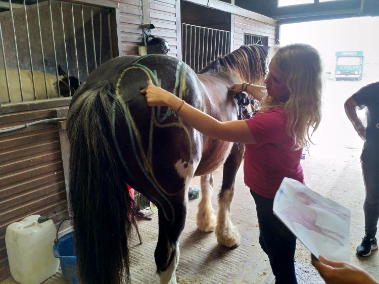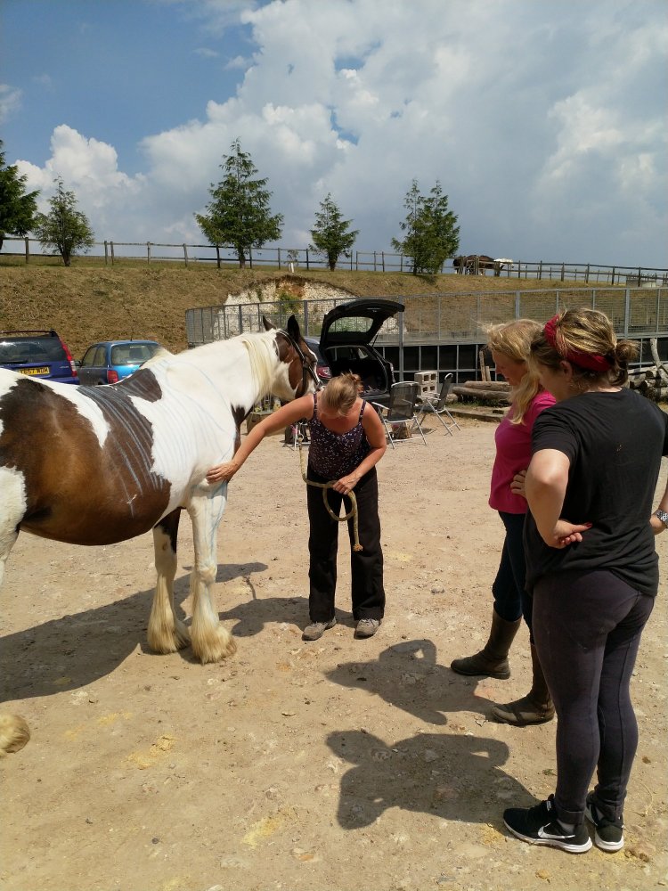 So today it was the turn of the horsey girls! My newest bunch of equine Merishia massage students started their practical training today. They are a lovely small group of just 3, which is great as it means they get a horse each to work on.